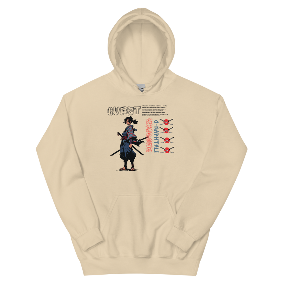 - Manga-Inspired Art – Featuring a striking lone samurai graphic that channels the spirit of Quest, this hoodie blends Japanese manga aesthetics with the journey of perseverance and honor.